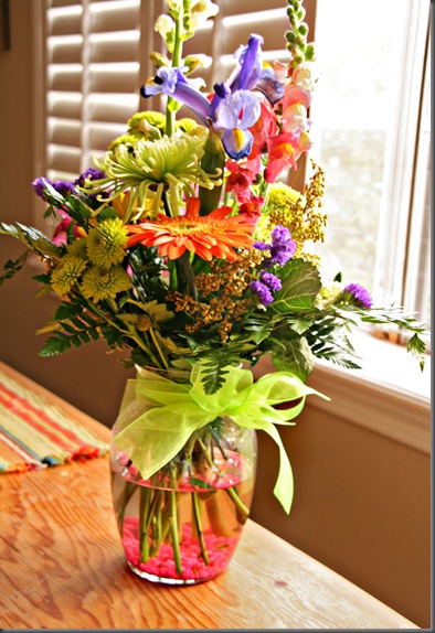Tuesday was my birthday. I got these beautiful flowers from Missy “THANK YOU MISSY!! I actually had a horrible day on my birthday. I was so busy I didn’t get to eat lunch or dinner and I got pulled over on top of that. These flowers really made my day! Also, I got lots of sweet messages on facebook, which was very very cool.
